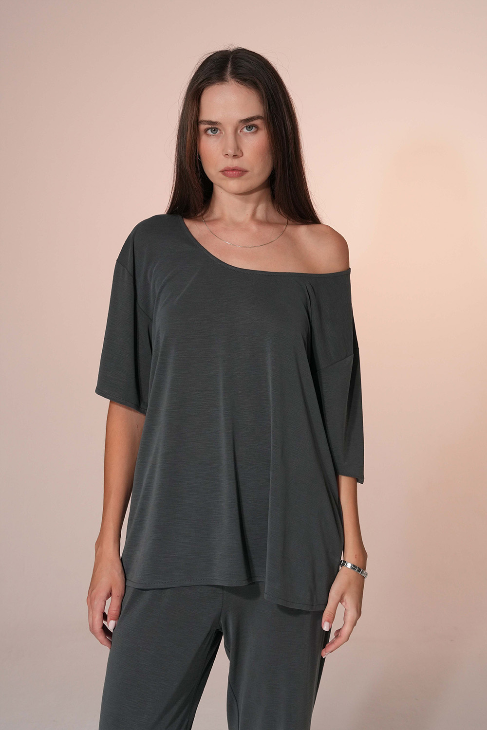 Doğal zarafetle yumuşaklığın buluştuğu bu üst, sade bir dokunuşla şıklığı yeniden tanımlıyor. Akışkan duruşu ve ipeksi parlaklığıyla yavaş sabahların, uzun yolculukların ve şehir sokaklarının vazgeçilmezi.