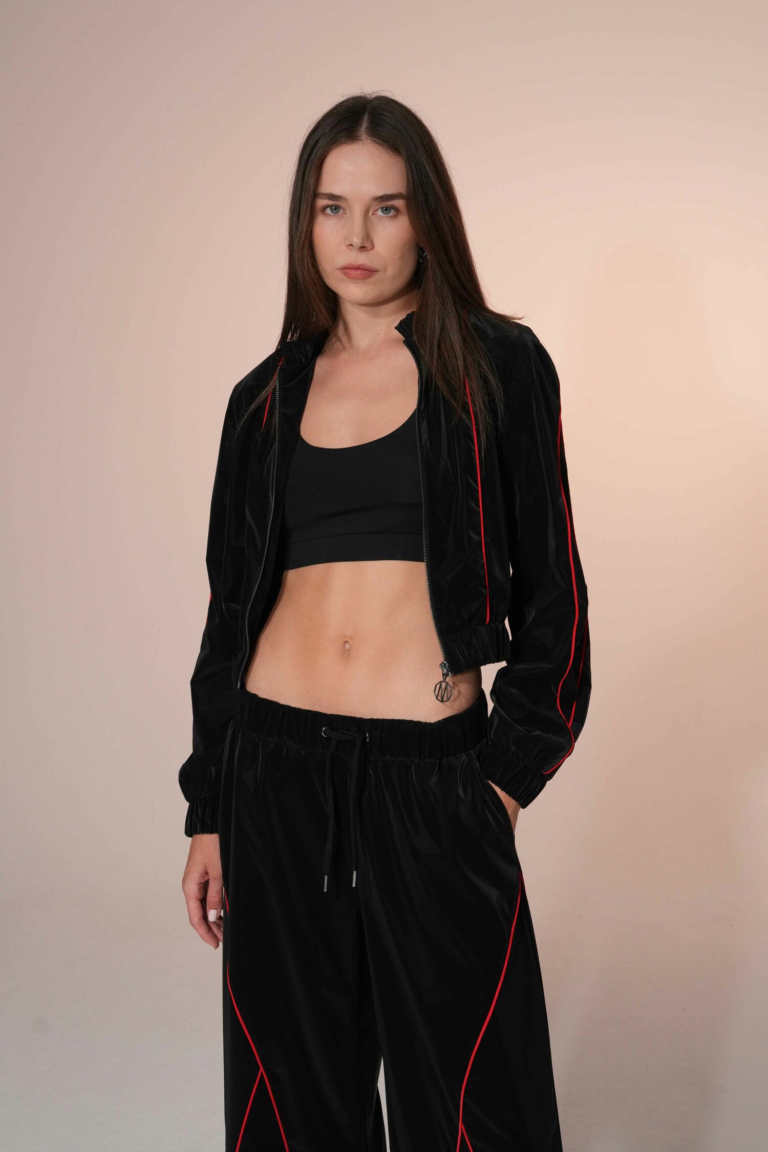 Hafif, fütüristik ve net çizgilerle güçlü. VELOCITY Ceket, kısa kesimi ve biye dikiş hatlarıyla geleceğe dönük bir stil yaratır.