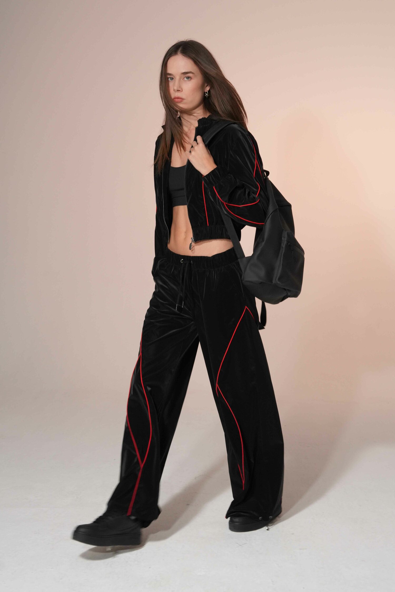 • Takım Ürün: Kısa rüzgarlık ceket ve geniş paça pantolon